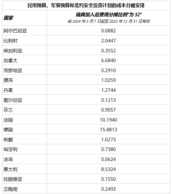 实际上,在共和党内部,想要美国退出北约的人并不少。比如犹他州共和党籍联邦参议员迈克·李等人,就一直在批评北约是冷战遗物,认为北约必须被终止,呼吁美国退出北约。迈克·李给出的理由是北约是保护欧洲的,对于欧洲有利,对美国却没好处,浪费了美国的资源,对美国是不公平的交易。马斯克早在2024年3月,也曾发帖表示:“我一直好奇,为什么北约存在理由,华沙条约组织已经解散了,而北约还一直存在。”同年5月,他再次发帖称:“美国纳税人为北约提供了2/3的预算?看上去很高。”《纽约时报》称白宫助手透露,特朗普在过去一年多的时间里曾多次提出想退出北约。他曾抱怨北约中的欧洲多国没有增加国防开支,这导致美国承担了巨大的负担,甚至是“保护整个欧洲大陆的重担”,认为北约对美国而言是一种消耗。他们归根结底就一个问题:美国凭什么一边交最多的会费,一边还要保护欧洲国家?应该让欧洲自己交钱,聘请美国来保护他们才对!大家都知道,北约(全称:北大西洋公约组织)是一个跨国军事联盟,是一个集体安全组织,当某一个北约成员国遭到第三方攻击时,将会被视为对北约的攻击,北约所有成员国将会集体向第三方发起攻击。你可以把北约简单理解成一个黑帮社团,一个黑老大罩着一帮小弟,哪个小弟在外面被欺负了,老大就带一帮小弟去围殴对方。小弟们则需要按时给社团交保护费,维持日常开销。这种组织在有强大外部威胁(比如苏联)时,大家同仇敌忾,老大站在最前面遮风挡雨,会让人非常有安全感。所以在冷战时期很多国家都想加入北约寻求庇护,苏联解体华约解散后,一帮原华约的成员国跳反,也想加入北约。具体如何加入北约,以及入约步骤环节,我在以前的文章《北约入门手册》中有详细讲述。我们今天详细讲的是北约国防支出的分摊情况。北约是以各个成员国的人均国民总收入+其他因素在内的成本分摊公式,经过计算后,按照比例进行缴纳会费。也就是说有钱的国家交的多,没钱的国家交的少。由于北约一直是美国主导,所以一直以来美国都缴纳了最多的会费,占比为22%,相比之下,32个成员国中有20个国家的会费占比还不到2%。特朗普在第一次当选总统时就对此提出了**,经过讨论,北约同意将美国的会费占比降低到16%,并在2021年开始生效。2025年,北约的会费总额是46亿欧元,那么美国的比例是16%,大概要上交7.36亿欧元。▲2025年北约各国的会费缴纳比例%,有些国家的会费连百分之一都不到,纯粹的白嫖。这种大哥带头保护小弟的模式时间一长,美国又发现不对劲了。许多成员国仗着有北约集体安全保护,将本国的国防支出极限降低,不断降低本国军队规模,省下来的钱用在其他地方,比如提高国民补贴。每年投入国防支出的钱不到GDP的1%。▲欧洲很多国家的军队被极限压缩,人数、装备数量都非常少,有的甚至全国只有几十辆坦克,说白了就是为了省钱,反正有美国罩着。北约所有成员国的财富总和与美国相当,但是成员国的国防支出加起来还不到美国的一半。911反恐时期,美国每年的国防开支占北约整体的三分之二。这种情况,在美国有钱时,它可以睁只眼闭只眼,当美国没钱时, 它就明显不同意了。老大哥每年出最多的钱用最大的力气保护你们,你们反倒连手里的刀都卖了,省下的钱天天吃喝玩乐。于是2006 年北约宣布,各个成员国必须将本国至少2%的GDP用于国防开支,维持必要的军事实力。但这里面还有空子可以钻,比如某国表面上拿出2%GDP用在国防支出上,实际上这些钱全都给部队官兵当奖金补贴发下去了,提高了官兵的生活水平,根本没有买啥武器装备,战斗力上并没有提升。2014年,俄罗斯出兵吞并克里米亚,中东也战乱纷纷,让北约各国意识到危机感。