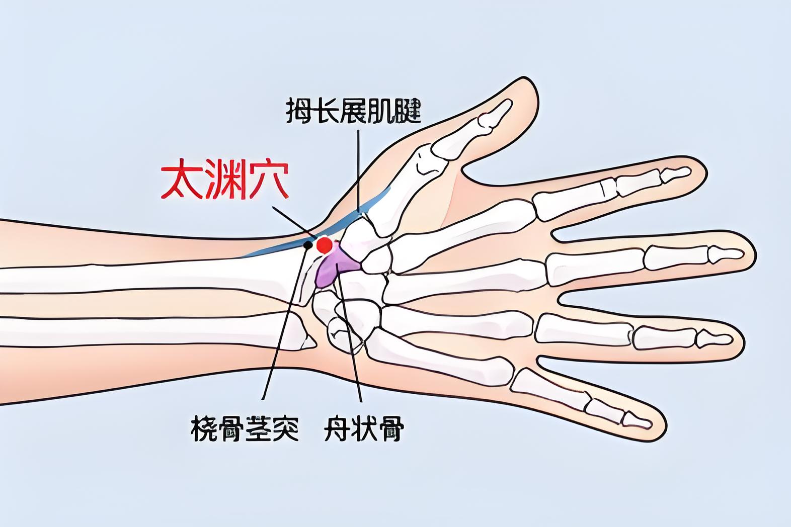 太渊穴是手太阴肺经的第九个穴位(LU9),为肺经的输穴(五行属土)、原穴(脏腑原气输注之处)及八会穴之脉会,具有补益肺气、通调血脉、止咳平喘的作用,是治疗呼吸系统疾病与脉管病症的核心穴位。以下是其详细表述: