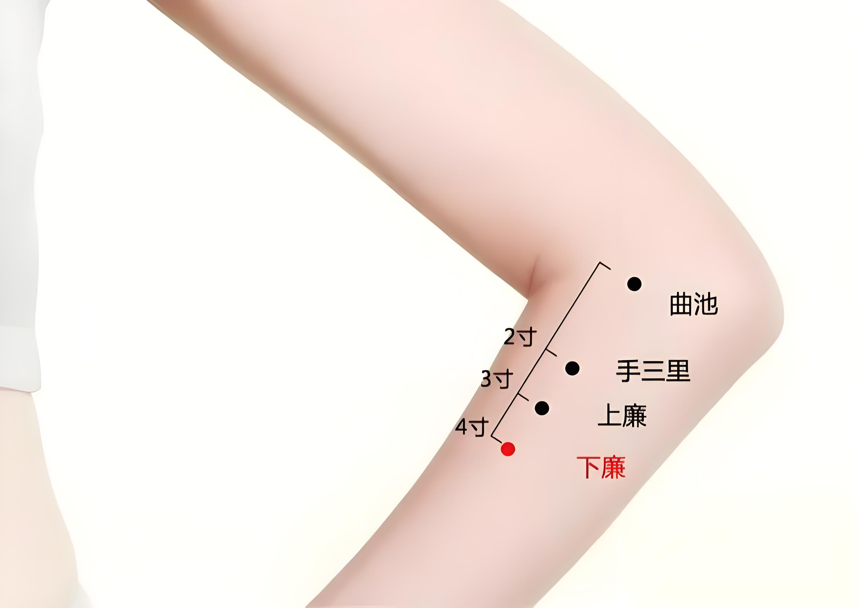 下廉穴为手阳明大肠经局部要穴,是“通经活络、调和胃肠”的重要穴位。