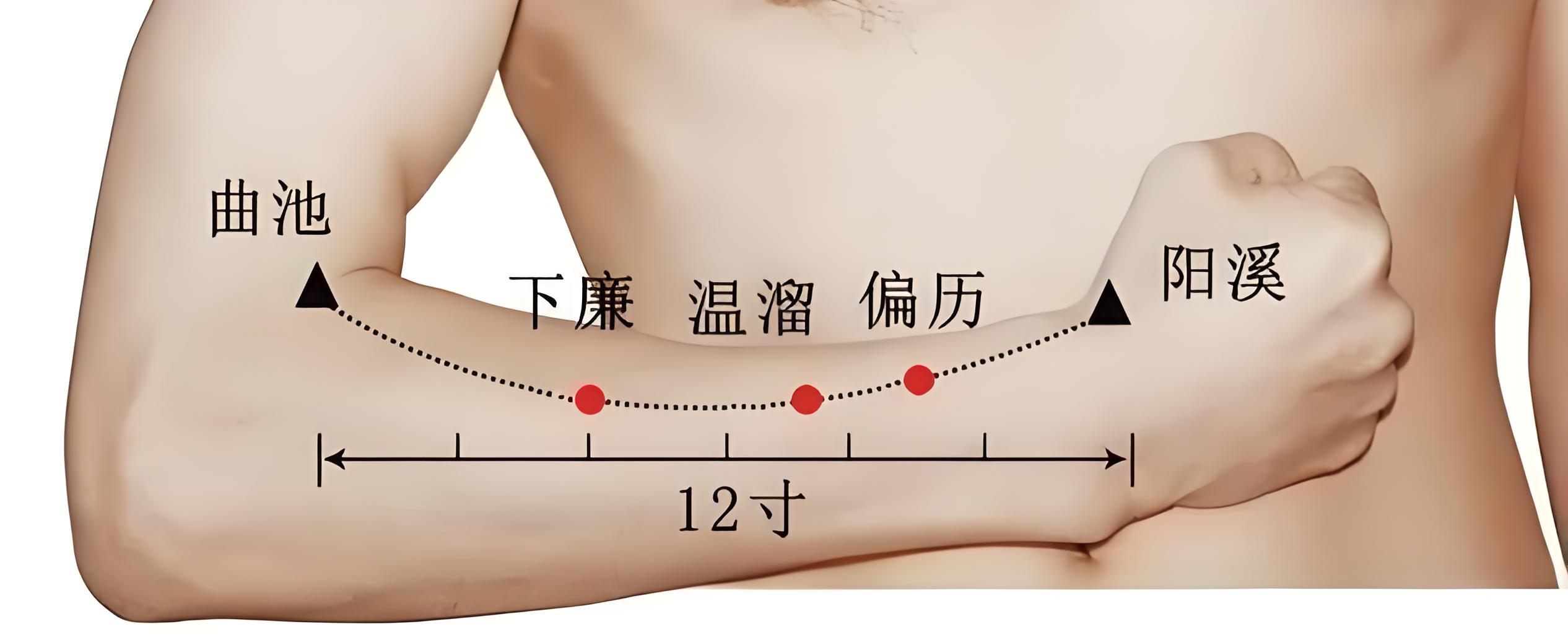 配手三里(LI10):疏经活络,缓解上肢麻木、肩背僵硬。