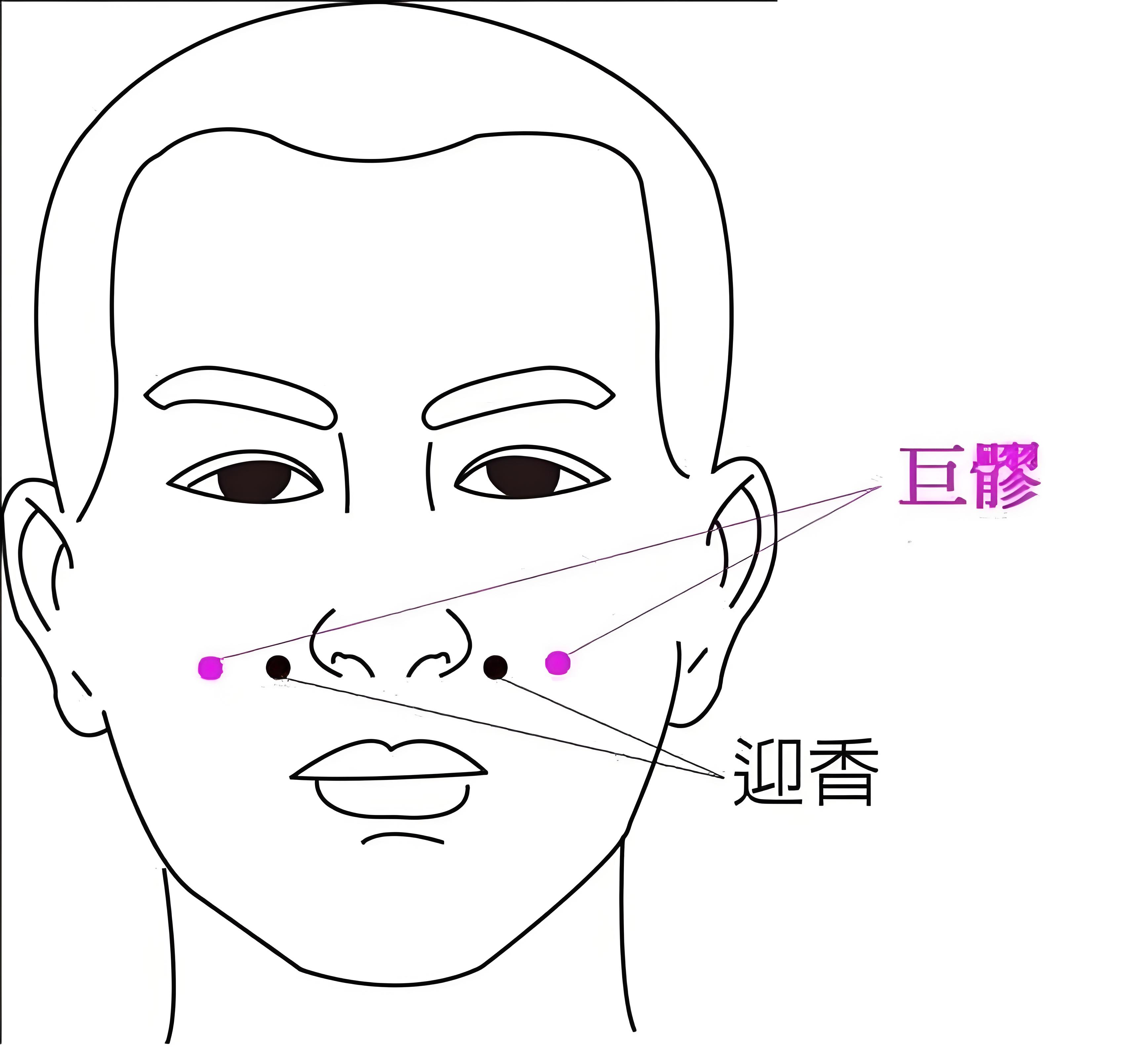 配迎香、合谷:通鼻开窍,治疗过敏性鼻炎。