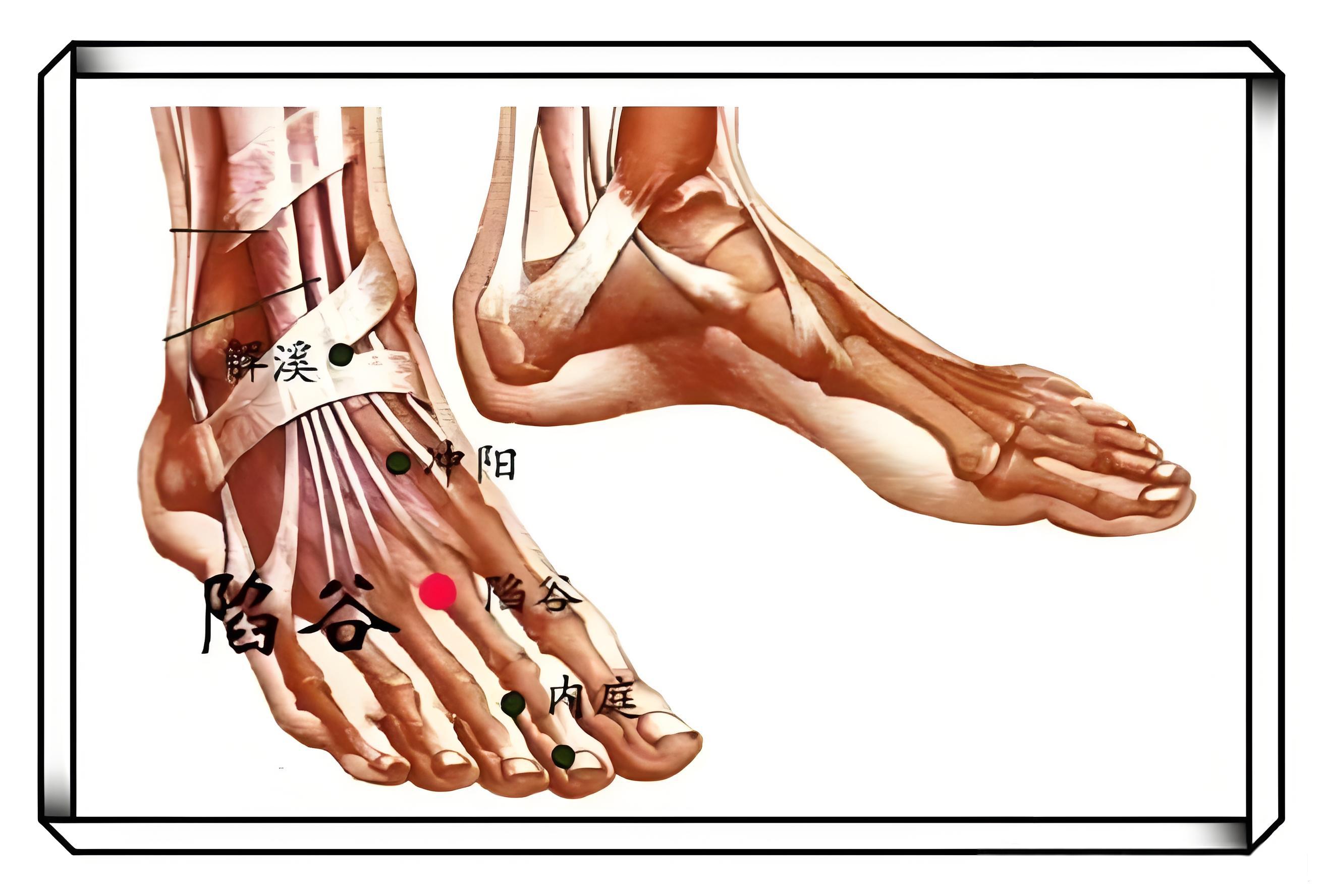 陷谷穴(ST43)是足阳明胃经在足背的穴位