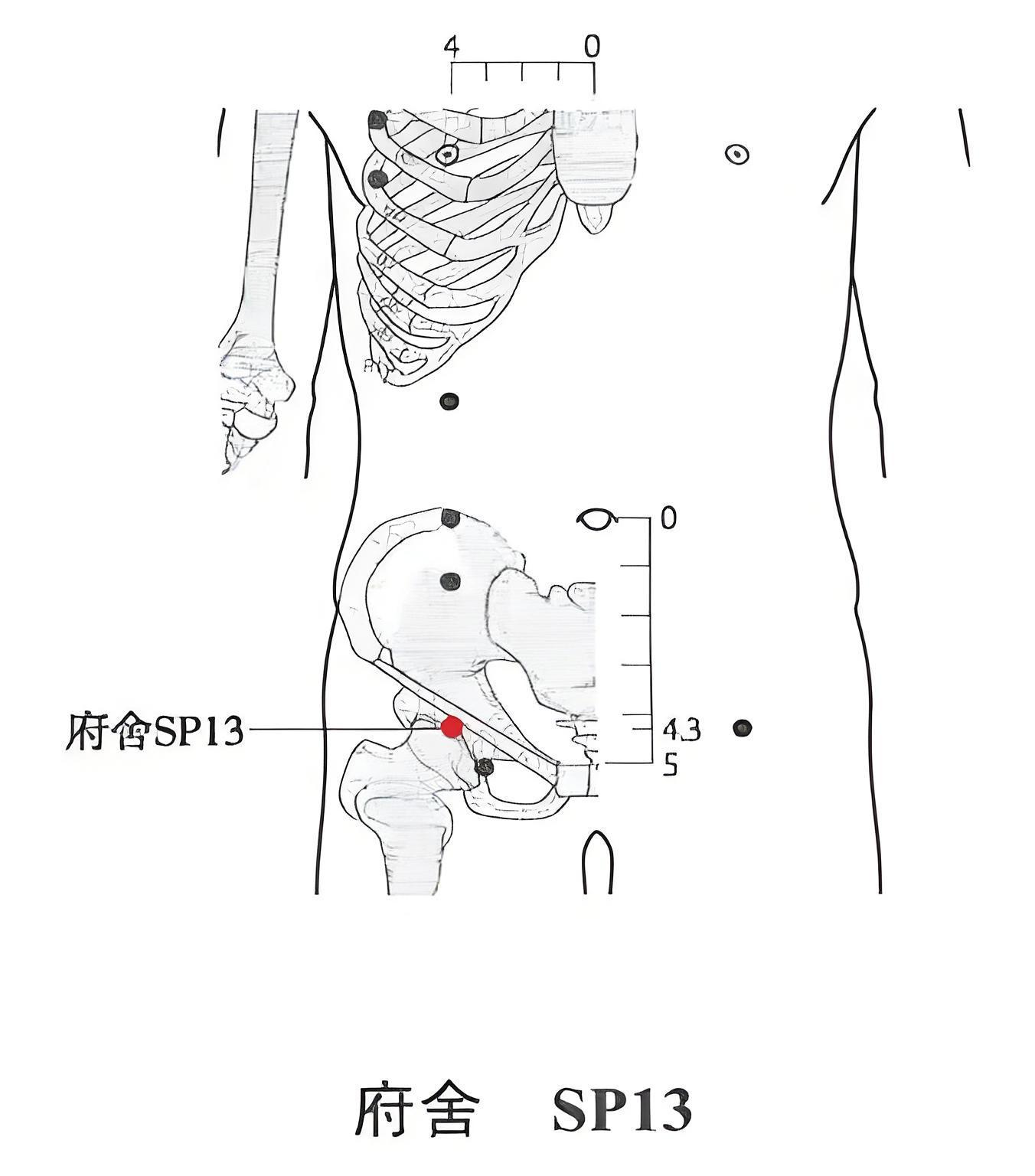 《针灸甲乙经》:“府舍主疝瘕,髀中急痛,腹满积聚,厥逆霍乱。”