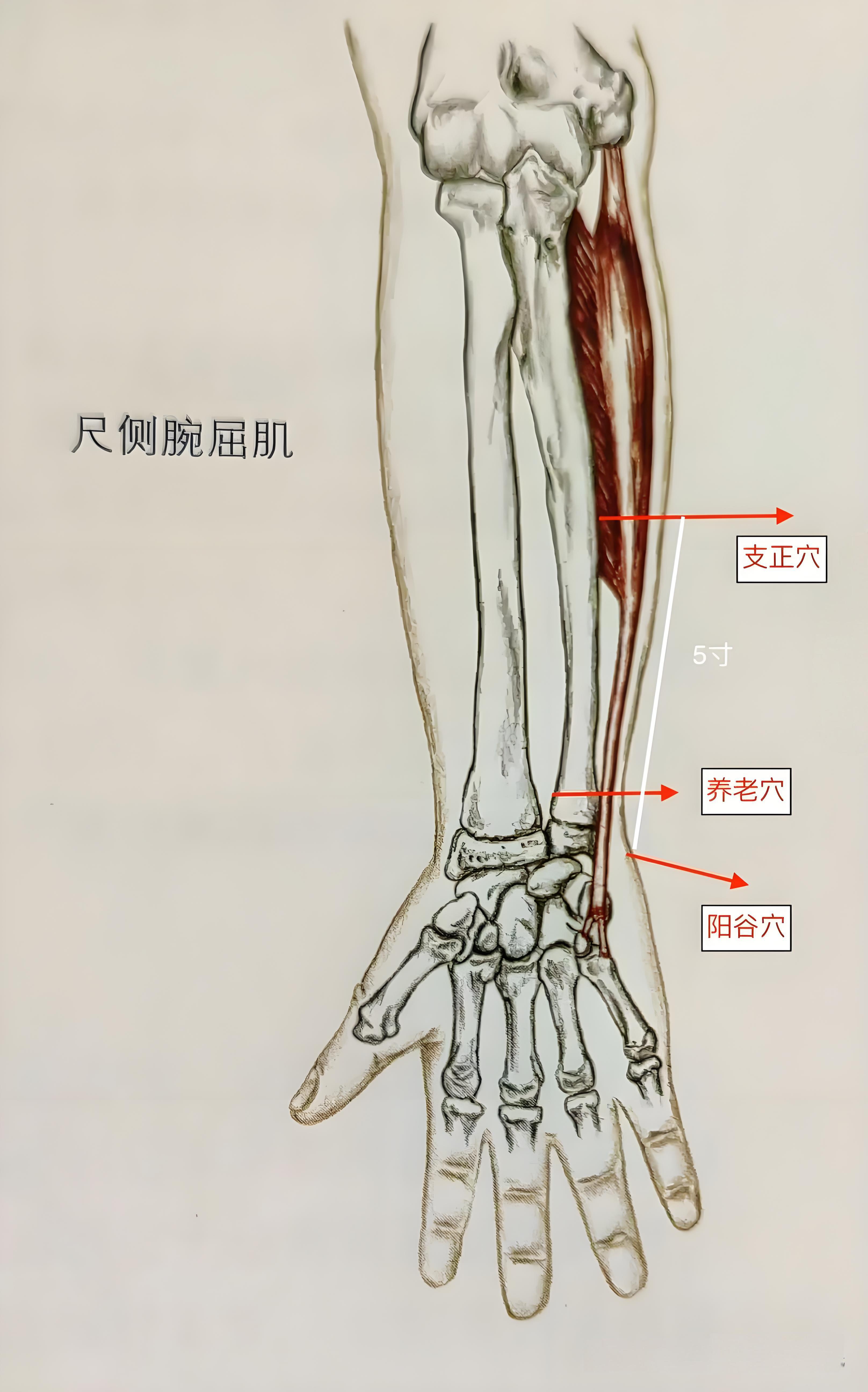 深层为尺神经及尺动静脉,避免深刺导致麻木或血肿。